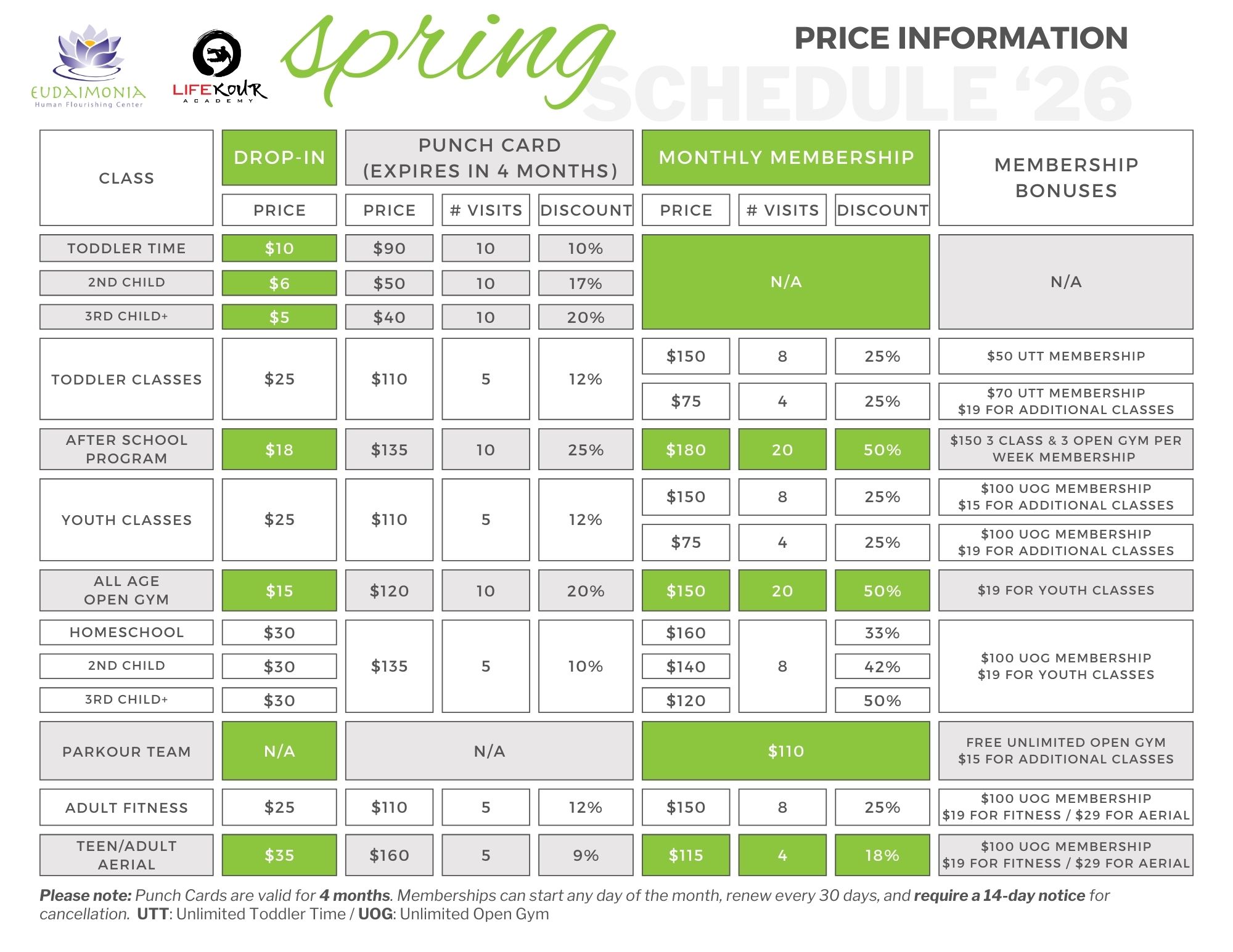 Please refer to our Price Information for the latest details.